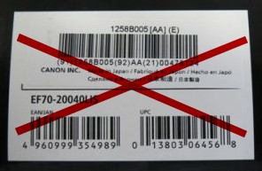 3. Les produits d'occasion, remis en état, remis à neuf, contrefaits ou violant les droits de la propriété intellectuelle du groupe de sociétés Canon d'une quelconque manière (par exemple, les produits parallèles ou du marché gris, entre autres).