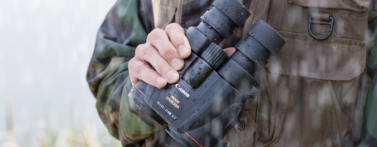 Jumelles 10x étanches* haute qualité dotées d'optiques lumineuses Canon de série L et d'un stabilisateur d’image optique offrant une vue ultra-stable dans les conditions météorologiques les plus extrêmes.