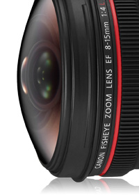 Il est inutile d'acheter deux objectifs spécialisés lorsque l'EF 8-15mm f/4L Fisheye USM offre des images fisheye plein format ou circulaires lorsqu'il est utilisé avec des appareils photo dotés d'un capteur 24 x 36 mm (plein format). Pour les photographes utilisant un reflex avec un capteur plus petit, les images plein format sont possibles. Avec un champ visuel diagonal à 180°, capturer l'intégralité d'une scène dans une image unique n'a jamais été aussi simple.