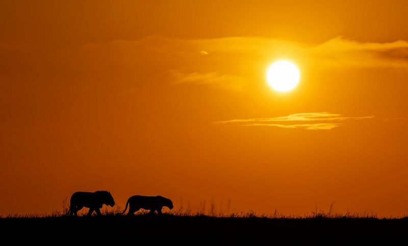 « Il y a beaucoup de moments particuliers, mais il en existe une petite poignée que vous pouvez être sûrs de ne jamais revoir. En 2018, par exemple, j'ai participé à un safari-photo. Nous étions sur la berge de la rivière Mara, en train d'attendre une importante traversée pendant un safari de migration. Je regarde toujours aux alentours, car quand on commence à étudier le comportement animal, on apprend à remarquer quand les prédateurs sont proches, et j'ai perçu un petit mouvement qui m'a permis de repérer une lionne couchée par terre. Elle attendait juste la traversée. J'ai prié pour que la lumière s'améliore, parce qu'il y avait beaucoup de nuages, et au moment précis où la traversée a commencé, il y a eu ce magnifique contre-jour au coucher du soleil, et la lionne s'est mise en chasse. Elle a soulevé d'immenses nuages de poussière qui ont donné un tel effet dramatique à la scène ! Je ne crois pas revoir ça un jour. »