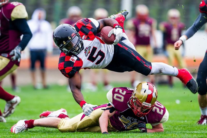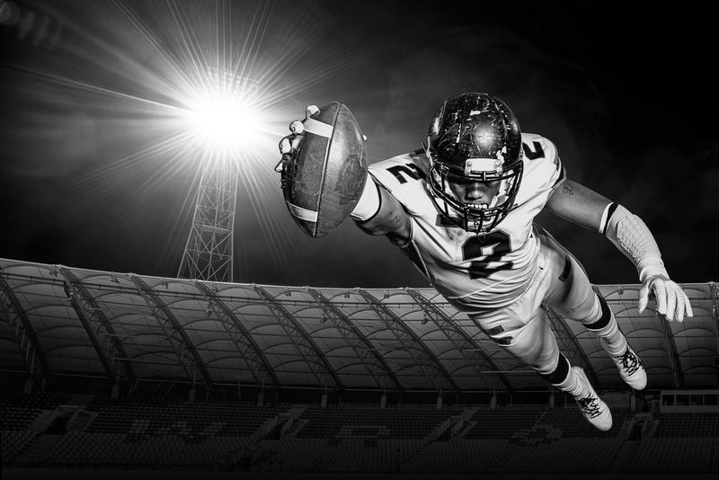 L'ambassadeur Canon Łukasz Skwiot a pris cette image dans le cadre d'une séance marketing pour une équipe polonaise de football américain. « J'ai eu les mains libres quant à la forme visuelle », dit-il. « J'ai choisi le Canon EOS 5DS, car il offre une résolution photo puissante et sa netteté et son niveau de détail créent un matériau commercial idéal. » Photo prise avec un objectif Canon EF 70-200mm f/2.8L IS II USM (désormais remplacé par l'objectif Canon EF 70-200mm f/2.8L IS III USM) à 70 mm, 1/125 s, f/9 et ISO 200. © Łukasz Skwiot