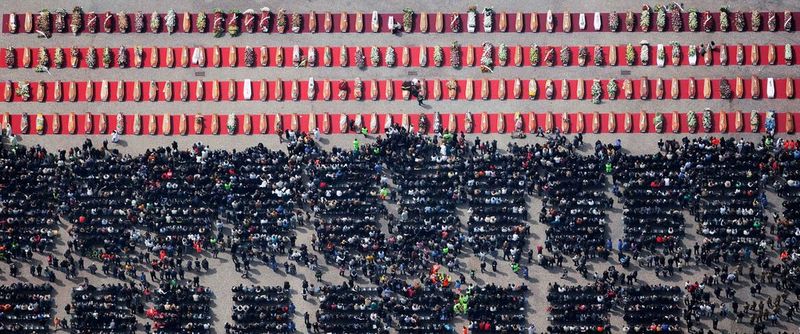« Je suis désormais convaincu que la distance offre un précieux avantage », déclare Massimo Sestini concernant l'approche qu'il a utilisée pour photographier cette image du dessus, qui a remporté le deuxième prix du concours World Press Photo 2015, dans la catégorie « Actualités générales - Images uniques ». « Le fait de prendre une photo à une hauteur de 760 m me permet de capturer l'intimité et la puissance d'une scène, chose que je ne pourrais pas faire sur le terrain, à proximité de mes sujets. »