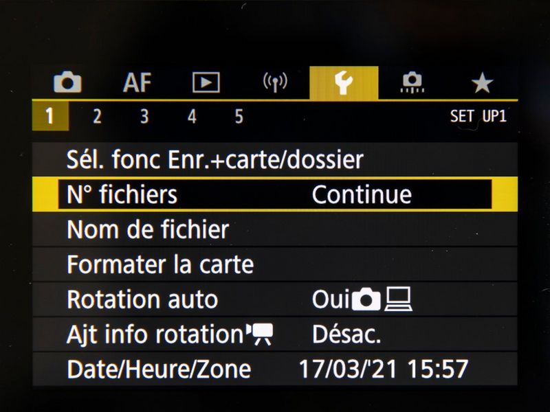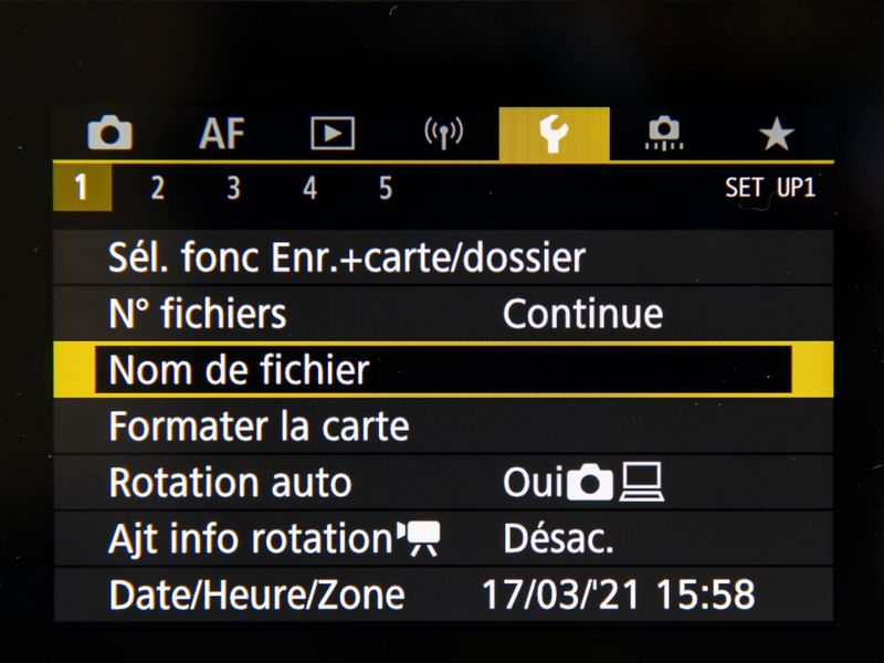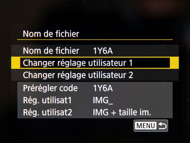 XXXX0001.JPGLes appareils photo numériques professionnels EOS utilisent un code d'appareil photo à quatre caractères comme préfixe du nom de fichier. Ce code est propre à l'appareil photo et est préréglé par Canon lors de la fabrication, mais avec les appareils photo plus récents – l'EOS 5D Mark IV, la série EOS-1 D et l'EOS R5 – il peut être personnalisé par le photographe et modifié aussi souvent que vous le souhaitez. Ainsi, vous pourriez, par exemple, souhaiter utiliser un code personnalisé pour une séance en particulier, comme 21NY pour votre séance en 2021 à New York. Pour en savoir plus, consultez le manuel d'utilisation de votre appareil photo. Notez que vous ne pouvez pas définir un trait de soulignement comme premier caractère, car il est réservé aux photos prises à l'aide d'Adobe RVB, comme indiqué ci-dessus.